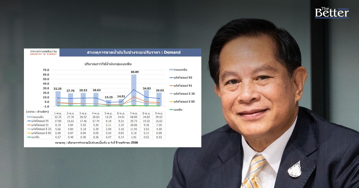 “จะเห็นได้ว่า จากปริมาณการเติมน้ำมันกลุ่มเบนซินทุกชนิดรวมกันเฉลี่ยอยู่ที่ประมาณวันละ 28 ล้านลิตร แต่ในวันที่ 7 พ.ย. 2566 ซึ่งเป็นวันแรกของการลดราคาน้ำมัน มีการเติมน้ำมันสูงถึงเกือบ 70 ล้านลิตร ทำให้หลายสถานีบริการน้ำมันมีน้ำมันไม่เพียงพอต่อการจำหน่าย หลังจากรับทราบปัญหา ผมได้ตั้งคณะกรรมการตรวจสอบการจำหน่ายน้ำมันขึ้นมาทันที และได้สั่งการให้หน่วยงานที่เกี่ยวข้อง ทั้งกรมธุรกิจพลังงาน บริษัท ปตท. จำกัด (มหาชน) ผู้ค้าน้ำมัน รวมถึงสำนักงานพลังงานจังหวัดเร่งดำเนินการตรวจสอบสถานีบริการน้ำมันที่มีน้ำมันไม่เพียงพอต่อการให้บริการ ให้รีบดำเนินการแก้ไข รวมถึงขอความร่วมมือผู้ค้าน้ำมันทุกราย เร่งกระจายน้ำมัน เพิ่มรอบในการขนส่ง จนวันนี้ สถานการณ์คลี่คลายกลับสู่ภาวะปกติ โดยเห็นได้จากสถิติการใช้น้ำมันในวันที่ 8 – 9 พ.ย. 2566 ที่มีปริมาณการใช้น้ำมันอยู่ที่ประมาณ 30 ล้านลิตร และจากการตรวจสอบ ณ วันที่ 9 พ.ย. 2566 มีเพียง 29 สถานีบริการจากกว่า 2 หมื่นสถานีบริการที่ยังขาดน้ำมัน แต่ทางกระทรวงพลังงานก็ยังมีการติดตามปริมาณการใช้น้ำมันอย่างต่อเนื่อง เนื่องจากมีกลุ่มผู้ใช้น้ำมันแก๊สโซฮอล์ 95 เดิม เปลี่ยนมาใช้น้ำมันแก๊สโซฮอล์ 91 ที่มีราคาถูกกว่า ซึ่งกระทรวงพลังงานก็จะติดตามไม่ให้เกิดการขาดแคลนอีก หากประชาชนพบว่าสถานีบริการใดไม่มีน้ำมันจำหน่าย สามารถแจ้งเรื่องได้ที่ศูนย์บริการร่วมกระทรวงพลังงาน โทร 02 140 7000” นายพีระพันธุ์ กล่าว