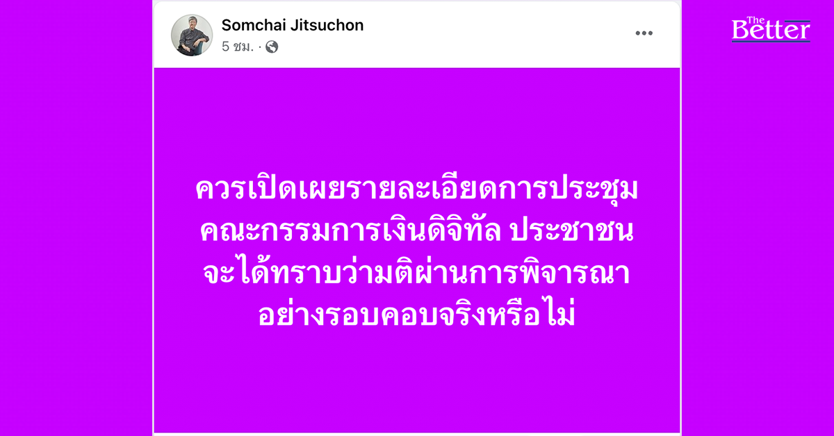 ควรเปิดเผยรายละเอียดการประชุมคณะกรรมการเงินดิจิทัล ประชาชนจะได้ทราบว่ามติผ่านการพิจารณาอย่างรอบคอบจริงหรือไม่