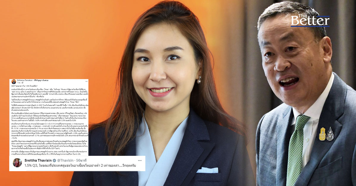 ต่อมา นายเศรษฐา ทวีสิน นายกรัฐมนตรี และรมว.คลัง ได้ รีทวิต ข้อความดังกล่าว พร้อมระบุ ว่า 1.5% Q3, ในขณะที่ประเทศคู่แข่งในอาเซี่ยนโตอย่างต่ำ 2 เท่าของเรา….วิกฤตครับ