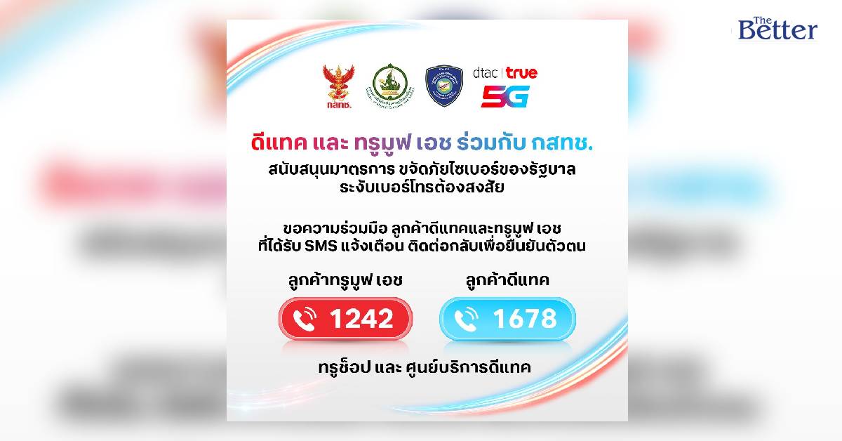 โดย ทรู คอร์ปอเรชั่น ในฐานะผู้ให้บริการโทรคมนาคม ตระหนักถึงภารกิจสำคัญในการดูแลลูกค้าทุกคนให้ปลอดภัยจากภัยคุกคามที่มาจากยุคดิจิทัล และต้องการร่วมแก้ไขปัญหาที่เกิดขึ้นอย่างเร่งด่วนกับทุกภาคส่วน จึงพร้อมเป็นอย่างยิ่งที่จะปฏิบัติตามคำสั่งของรัฐ ร่วมมือกับกระทรวงดิจิทัลเพื่อเศรษฐกิจและสังคม (ดีอีเอส) สำนักงานตำรวจแห่งชาติ และสำนักงาน กสทช. สนับสนุนมาตรการขจัดภัยไซเบอร์ของของภาครัฐ ที่กำหนดให้ระงับการใช้เบอร์โทรต้องสงสัยที่มีการใช้งานโทรออกมากผิดปกติ