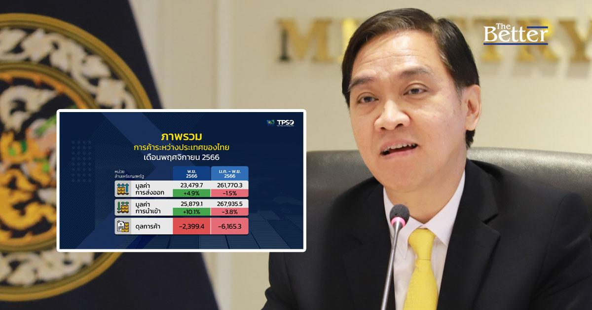 นายกีรติ รัชโน ปลัดกระทรวงพาณิชย์ เปิดเผยถึงภาวะการค้าระหว่างประเทศของไทย เดือนพฤศจิกายน 2566 และ 11 เดือนแรกของปี 2566 ว่า การส่งออกของไทยในเดือนพฤศจิกายน 2566 มีมูลค่า 23,479.7 ล้านเหรียญสหรัฐ (847,486 ล้านบาท) ขยายตัวต่อเนื่องเป็นเดือนที่ 4 ที่ร้อยละ 4.9 ส่งผลให้ภาพรวม 11 เดือน การส่งออกหดตัวร้อยละ 1.5 และเมื่อหักสินค้าเกี่ยวเนื่องกับน้ำมัน ทองคำ และยุทธปัจจัย ขยายตัวร้อยละ 0.5