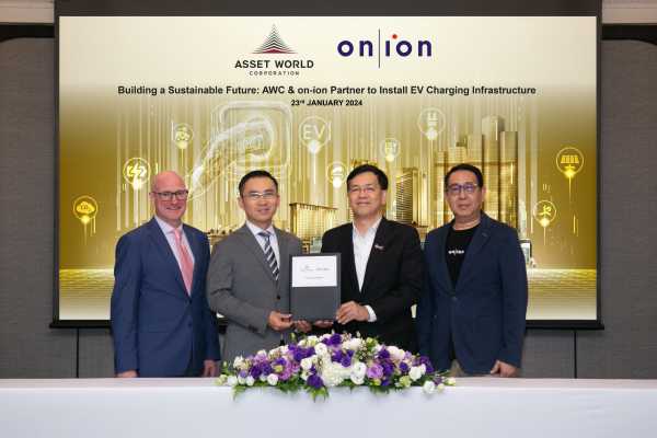 วัลลภา ไตรโสรัส ประธานเจ้าหน้าที่บริหารและกรรมการผู้จัดการใหญ่ บริษัท แอสเสท เวิรด์ คอร์ป จำกัด (มหาชน) หรือ AWC ผู้พัฒนาโครงการอสังหาริมทรัพย์ อาคารสำนักงาน, โรงแรม, ค้าปลีก กล่าวว่า AWC ร่วมกับบริษัท อรุณ พลัส จำกัด ในกลุ่ม ปตท. ลงนามความร่วมมือเปิดสถานีชาร์จรถยนต์ไฟฟ้า (EV Charging Station) ภายใต้แบรนด์ on-ion (ออน-ไอออน) ในโครงการอสังหาริมทรัพย์เครือ AWC ทั้งหมด 17 โครงการ รวมกว่า 50 หัวชาร์จภายในปีนี้ ครอบคลุมหัวเมืองท่องเที่ยวใหญ่
