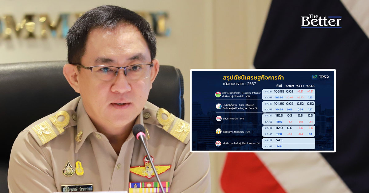 นายพูนพงษ์ นัยนาภากรณ์ ผู้อำนวยการสำนักงานนโยบายและยุทธศาสตร์การค้า เผยว่า ดัชนีราคาผู้บริโภคของไทย เดือนมกราคม 2567 เท่ากับ 106.98 เมื่อเทียบกับเดือนมกราคม 2566 ซึ่งเท่ากับ 108.18 ส่งผลให้อัตราเงินเฟ้อทั่วไปลดลงร้อยละ 1.11 (YoY) ลดลงต่อเนื่องเป็นเดือนที่ 4 และต่ำสุดในรอบ 35 เดือน ตามการลดลงของราคาสินค้าในกลุ่มพลังงาน จากมาตรการลดค่าใช้จ่ายด้านพลังงานของภาครัฐ