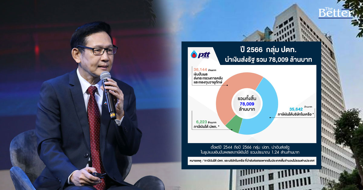 ทั้งนี้คณะกรรมการ ปตท. มีมติจ่ายเงินปันผลสำหรับผลประกอบการปี 2566 ในอัตราหุ้นละ 2.00 บาท โดยได้จ่ายปันผลระหว่างกาลไปแล้วในอัตราหุ้นละ 0.80 บาท เมื่อกันยายน 2566 คงเหลือเงินปันผลที่จะจ่ายอีกในอัตราหุ้นละ 1.20 บาท ซึ่งกระทรวงการคลังในฐานะผู้ถือหุ้นใหญ่และกองทุนวายุภักษ์รับปันผลรวมประมาณ 3.6 หมื่นล้านบาท และเมื่อรวมกับภาษีเงินได้นิติบุคคลของ ปตท. และบริษัทในเครือ อีกประมาณ 4.2 หมื่นล้านบาท รวมกลุ่ม ปตท. นำส่งรายได้จากการดำเนินธุรกิจปี 2566 ให้กับรัฐแล้วประมาณ 7.8 หมื่นล้านบาท.jpg)