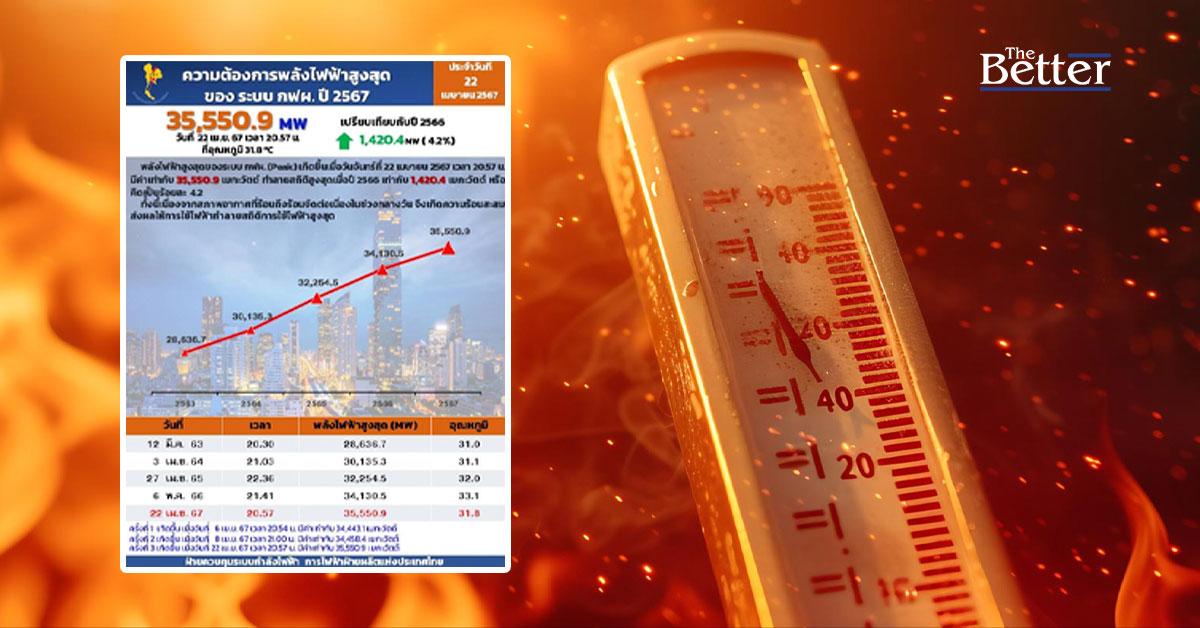 ทั้งนี้วันที่ 22 เม.ย. 2567 อุณหภูมิเฉลี่ยทั่วประเทศประมาณ 35-38 องศาเซลเซียส แต่บางพื้นที่ความร้อนสะสมสูงถึง 42 องศาเซลเซียส ที่อำเภอเถิน จ.ลำปาง ส่งผลให้ประชาชนใช้ไฟฟ้าเพื่อคลายความร้อนกันจำนวนมาก