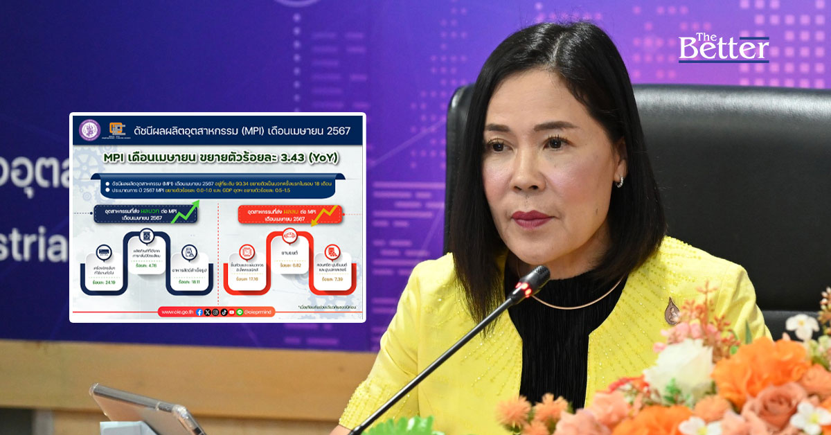 นางศิริเพ็ญ เกียรติเฟื่องฟู รองผู้อำนวยการสำนักงานเศรษฐกิจอุตสาหกรรม (สศอ.) เปิดเผยว่า ดัชนีผลผลิตอุตสาหกรรม (MPI) เดือนเมษายน 2567 อยู่ที่ระดับ 90.34 ขยายตัวร้อยละ 3.43 เมื่อเทียบกับช่วงเดียวกันของปีก่อน กลับมาขยายตัวเป็นครั้งแรกหลังหดตัวต่อเนื่อง 18 เดือน อัตราการใช้กำลังการผลิตอยู่ที่ ร้อยละ 55.26 ซึ่งสาเหตุหลักมาจากการส่งออกกลับมาขยายตัว โดยการส่งออกสินค้าอุตสาหกรรม (ไม่รวมทองคำ อาวุธ รถถัง และอากาศยานรบ) ขยายตัวร้อยละ 14.0 เมื่อเทียบกับช่วงเดียวกันของปีก่อน ขณะที่ภาคการท่องเที่ยวขยายตัวอย่างต่อเนื่อง แนวโน้มเศรษฐกิจโลกเริ่มฟื้นตัว และฐานต่ำในปีก่อน