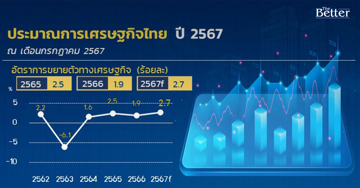 ทั้งนี้ ผลประมาณการการขยายตัวทางเศรษฐกิจครั้งนี้ได้ปรับเพิ่มขึ้นเมื่อเทียบกับผลประมาณการเศรษฐกิจไทย ณ เมษายน 2567 ที่ร้อยละ 2.4 เนื่องจาก
