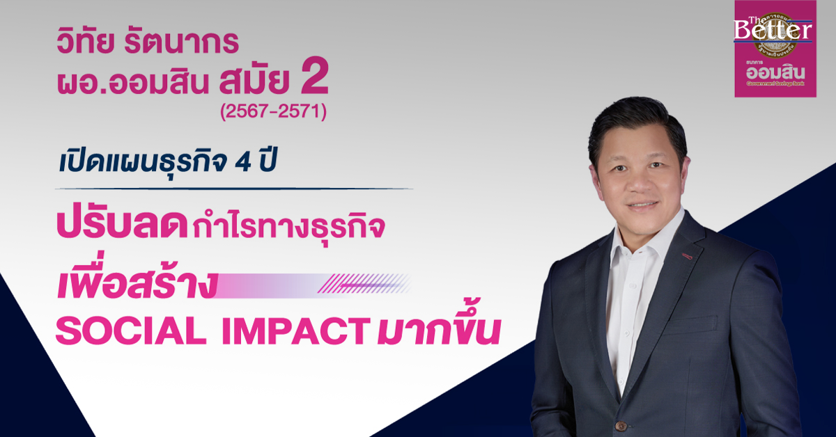 ออมสิน เปิดแผนธุรกิจ 4 ปี ภายใต้การนำของ วิทัย รัตนากร สมัยที่ 2 ตั้งเป้าปรับลดกำไรเพื่อสร้าง Social Impact พร้อมยกระดับสนับสนุนนโยบายรัฐ