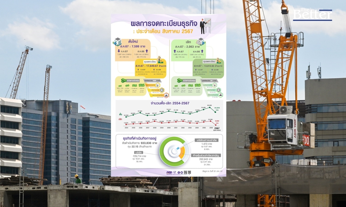พาณิชย์ เผย ยอดธุรกิจตั้งใหม่ เดือน ส.ค. 7,599 ราย เพิ่มขึ้น 2.36% 3 อันดับแรก “ก่อสร้าง -อสังหาฯ-ร้านอาหาร” 8 เดือน รวมกว่า 6 หมื่นราย