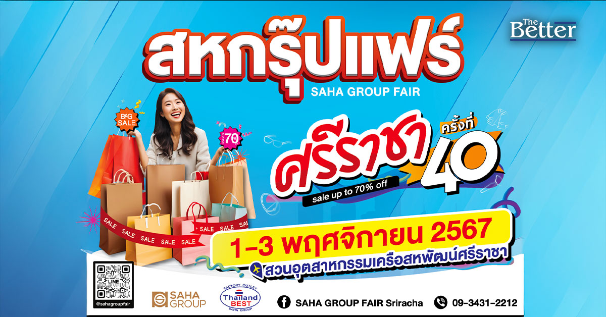 สายช้อปพลาดไม่ได้ สหกรุ๊ปยกทัพสินค้าแบรนด์ดังนับพันรายการ มาจัดหนักจัดเต็ม โปรดี ลดกันแบบจุกๆ งาน “สหกรุ๊ปแฟร์ศรีราชา ครั้งที่ 40” ระหว่างวันที่ 1-3 พฤศจิกายน 2567 นี้