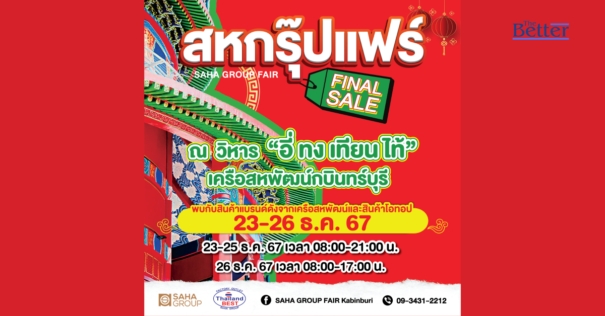 กลับมาอีกครั้ง ส่งท้ายปีไปกับพวกเรา งานสหกรุ๊ปแฟร์ Final sale ตั้งแต่ วันที่ 23-26 ธ.ค. 2567 ที่ อ.กบินทร์บุรี จ.ปราจีนบุรี