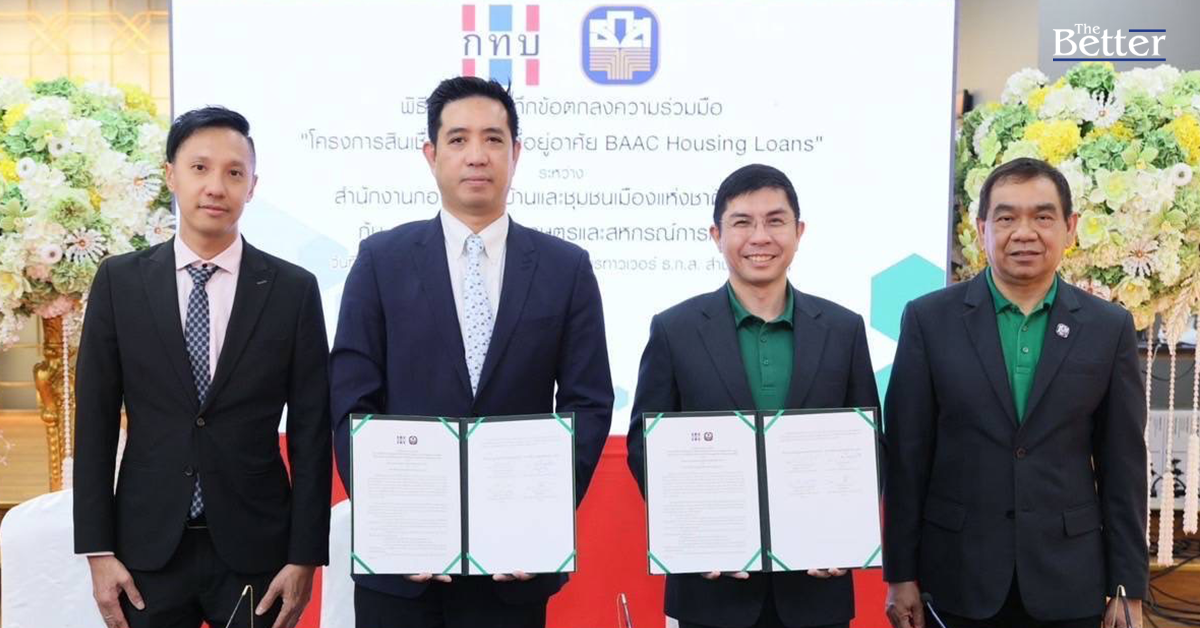 นายฉัตรชัย ศิริไล ผู้จัดการธนาคารเพื่อการเกษตรและสหกรณ์การเกษตร (ธ.ก.ส.) พร้อมด้วย นายเบญจพล นาคประเสริฐ ผู้อำนวยการสำนักงานกองทุนหมู่บ้านและชุมชนเมืองแห่งชาติ (สทบ.) ร่วมลงนามบันทึกข้อตกลงความร่วมมือโครงการสินเชื่อเคหะเพื่อที่อยู่อาศัยระหว่าง ธ.ก.ส. และสำนักงานกองทุนหมู่บ้านและชุมชนเมืองแห่งชาติ ซึ่งถือเป็นหน่วยงาน ที่มีบทบาทในการส่งเสริมชุมชนให้เกิดความเข้มแข็งด้านเศรษฐกิจและ การพัฒนาคุณภาพชีวิต
