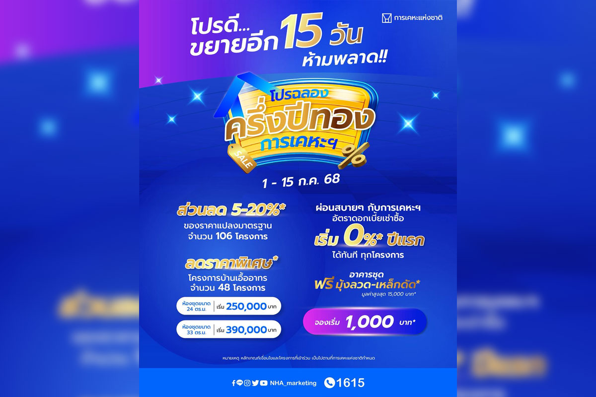 กคช. เดินหน้าสานต่อภารกิจให้ประชาชนเข้าถึงที่อยู่อาศัยในราคาจับต้องได้ ล่าสุดประกาศขยายระยะเวลาแคมเปญใหญ่แห่งปี “ฉลองครึ่งปีทอง กับการเคหะแห่งชาติ” ออกจนถึงวันที่ 15 กรกฎาคม 2568
