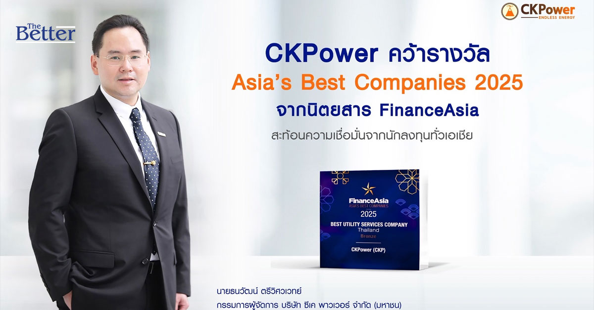 บริษัท ซีเค พาวเวอร์ จำกัด (มหาชน) หรือ CKPower (ชื่อย่อหลักทรัพย์: CKP) หนึ่งในผู้นำในการผลิตไฟฟ้าจากพลังงานหมุนเวียนที่ใหญ่ที่สุดในภูมิภาคและมีคาร์บอนฟุตพรินต์ที่ต่ำที่สุดรายหนึ่ง ได้รับรางวัลระดับ Bronze ในกลุ่มบริษัทที่มีการบริหารจัดการที่ยอดเยี่ยม (Best Managed Company) จากเวทีประกาศรายชื่อสุดยอดบริษัทแห่งเอเชีย 2568 (Asia’s Best Companies Poll 2025) จัดโดยนิตยสาร FinanceAsia ฮ่องกง ซึ่งเป็นหนึ่งในสื่อด้านการเงินการลงทุนชั้นนำของภูมิภาค ซึ่งมอบรางวัลให้แก่องค์กรชั้นนำของเอเชีย จากการสำรวจความคิดเห็นของผู้จัดการกองทุน นักวิเคราะห์ นักลงทุน และนักวิเคราะห์ทั่วภูมิภาคเอเชีย โดยพิจารณาจากมิติแห่งความเป็นเลิศหลายปัจจัย อาทิ การวางกลยุทธ์องค์กรอย่างมีประสิทธิภาพ ความโปร่งใสในการสื่อสารกับนักลงทุน การเติบโตอย่างมั่นคงและยั่งยืน รวมถึงความสามารถในการปรับตัวและรักษาเสถียรภาพของธุรกิจ ท่ามกลางบริบทเศรษฐกิจที่เปลี่ยนแปลงอย่างต่อเนื่อง