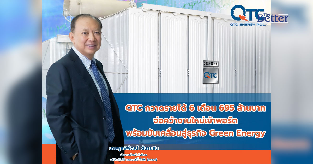 QTC กวาดรายได้ 6 เดือน 695 ล้านบาท จ่อคว้างานใหม่เข้าพอร์ต พร้อมขับเคลื่อนสู่ธุรกิจ Green Energy