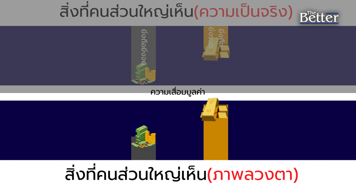 สิ่งที่ผู้คนจำนวนมากเข้าใจผิดคือการมองว่า “ทองขึ้นราคา” หรือ “อาหารแพงขึ้น” แท้จริงแล้วมันคือ ภาพลวงตาของเงินเฟ้อ ค่าเงินที่เสื่อมลงทำให้สิ่งของดูแพงขึ้น ในขณะที่ทองคำกลับคงคุณค่า ทำให้เกิดความเหลื่อมล้ำมากขึ้นอย่างหลีกเลี่ยงไม่ได้ เพราะคนส่วนใหญ่กลับเลือกถือเงินสดที่พิมพ์เพิ่มได้ไม่จำกัด แทนที่จะถือสินทรัพย์ที่รักษามูลค่าอย่างแท้จริง