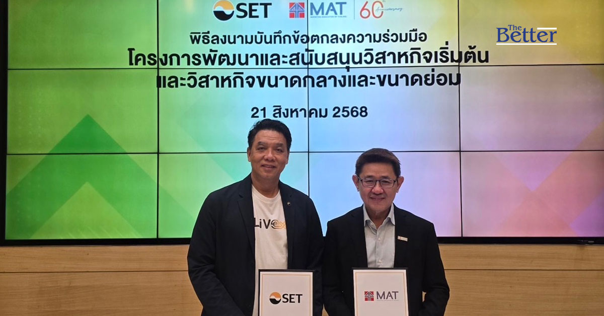 ดร.บุรณิน รัตนสมบัติ นายกสมาคมการตลาดแห่งประเทศไทย และคุณประพันธ์ เจริญประวัติ ผู้ช่วยผู้จัดการ ตลาดหลักทรัพย์แห่งประเทศไทย ร่วมพิธีลงนามบันทึกข้อตกลงความร่วมมือ “โครงการพัฒนาและสนับสนุนวิสาหกิจเริ่มต้น และวิสาหกิจขนาดกลางและขนาดย่อม” ภายใต้ความร่วมมือนี้ ทั้งสององค์กรจะร่วมกันจัดทำ คอนเทนต์ความรู้ในรูปแบบคลิปวิดีโอสั้น ผ่าน LiVE Platform และช่องทางออนไลน์ต่าง ๆ เพื่อมุ่งพัฒนาทักษะการตลาด การสร้างแบรนด์ และการบริหารธุรกิจสำหรับผู้ประกอบการไทยในยุคดิจิทัล ความร่วมมือนี้สะท้อนพันธกิจร่วมกันของ SET และ MAT ในการ เสริมสร้างความแข็งแกร่งของผู้ประกอบการไทย เพิ่มขีดความสามารถในการแข่งขัน และผลักดันให้ธุรกิจเติบโตอย่างยั่งยืน