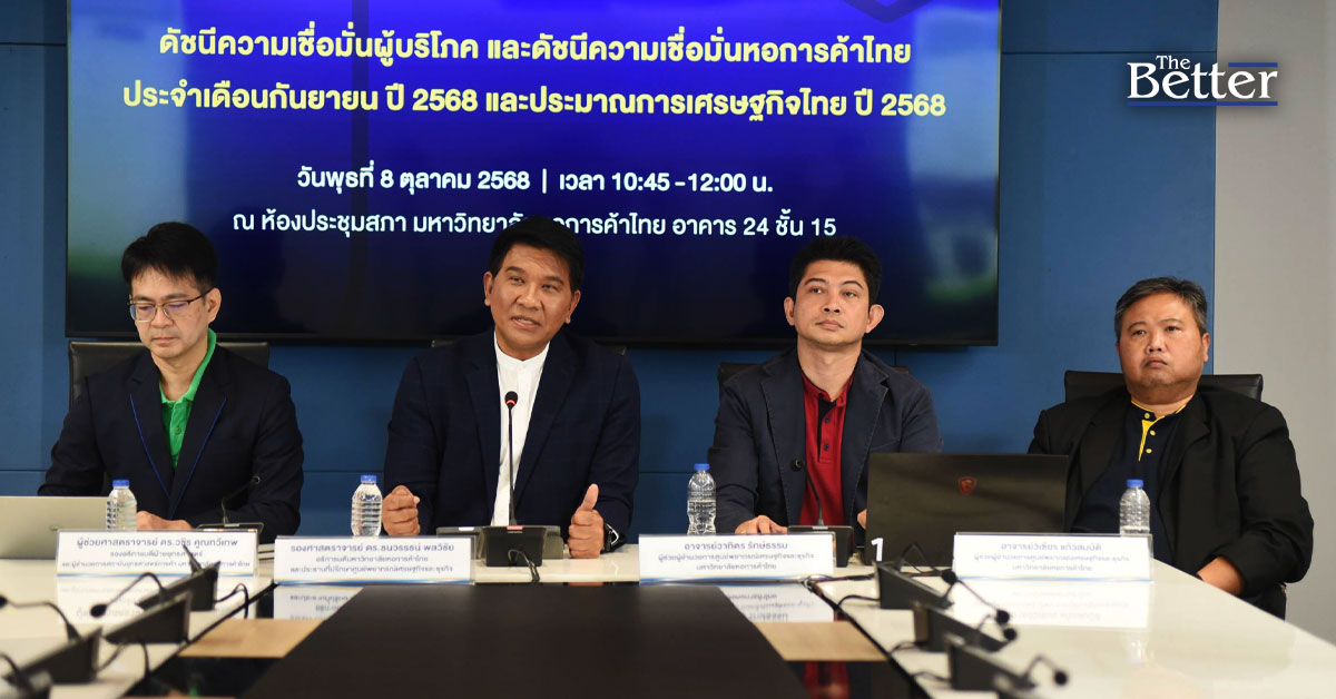 รศ.ดร.ธนวรรธน์ พลวิชัย อธิการบดีมหาวิทยาลัยหอการค้าไทยและประธานที่ปรึกษาศูนย์พยากรณเศรษฐกิจและธุรกิจ เปิดเผยถึงผลสำรวจดัชนีความเชื่อมั่นของผู้บริโภค (Consumer Confidence Index: CCI) เดือนก.ย. 2568 ว่าดัชนีฯปรับตัวดีขึ้นจากระดับ 50.1 เป็น 50.7 ปรับตัวดีขึ้นเป็นครั้งแรกในรอบ 8 เดือน เนื่องจากผู้บริโภคมีความหวังและมีความเชื่อมั่นว่ารัฐบาลใหม่ภายใต้การนำของนายกรัฐมนตรีคนที่ 32 นายอนุทิน ชาญวีรกูล และคณะรัฐมนตรีจะสามารถใช้นโยบายของรัฐเช่น โครงการคนละครึ่งพลัส กระตุ้นเศรษฐกิจให้ฟื้นตัวได้