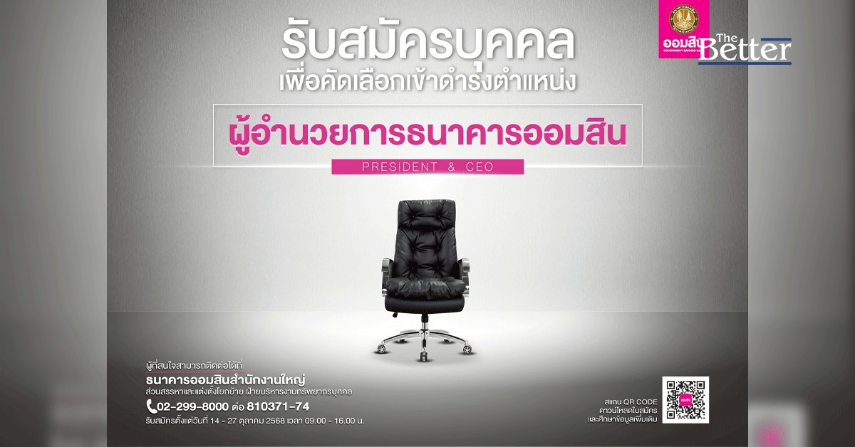 อย่างไรก็ตามสามารถดาวน์โหลดใบสมัครและศึกษารายละเอียดเพิ่มเติมได้ที่ www.gsb.or.th โดยยื่นใบสมัครด้วยตนเอง หรือมอบให้ตัวแทนเป็นผู้ยื่น โดยมีหนังสือมอบอำนาจ พร้อมเอกสารหลักฐานประกอบการสมัครได้ที่ ส่วนสรรหาและแต่งตั้งโยกย้าย ฝ่ายบริหารงานทรัพยากรบุคคล อาคาร 32 ชั้น ชั้น 15 ธนาคารออมสินสำนักงานใหญ่ ถนนพหลโยธิน แขวงสามเสนใน เขตพญาไท กรุงเทพมหานคร ตั้งแต่วันอังคารที่ 14 ตุลาคม - วันจันทร์ที่ 27 ตุลาคม 2568 ระหว่างเวลา 09.00 – 16.00 น. สอบถามรายละเอียดเพิ่มเติมได้ที่ โทร. 0-2299-8000 ต่อ 810371 - 74