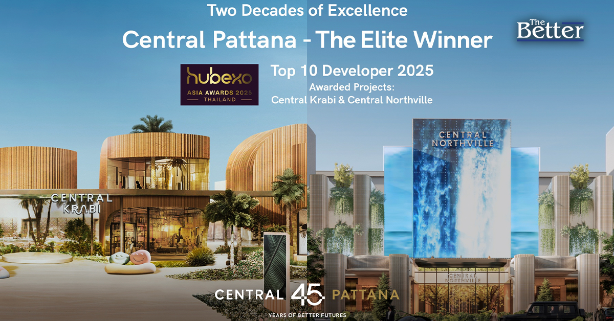 บริษัท เซ็นทรัลพัฒนา จำกัด (มหาชน) หรือ CPN ผู้นำอสังหาริมทรัพย์เพื่อความยั่งยืนของประเทศไทย ตอกย้ำความสำเร็จต่อเนื่องตลอด 45 ปี คว้า 2 รางวัลใหญ่จากเวที Hubexo Asia Awards 2025 ได้แก่ รางวัล “Elite Winner” ซึ่งเป็นรางวัลพิเศษที่มอบให้กับองค์กรที่คว้ารางวัล Top 10 ติดต่อกันสิบครั้งขึ้นไปตลอดสองทศวรรษที่ผ่านมา และ Top 10 Developers 2025 จากผลงานพัฒนาโครงการมิกซ์ยูสต้นแบบ “เซ็นทรัล กระบี่” และ “เซ็นทรัล นอร์ทวิลล์” ตอกย้ำแนวคิดการออกแบบที่ยกระดับศูนย์การค้าให้เป็น Heart of the City หรือหัวใจของเมือง สอดคล้องกับวิสัยทัศน์ “Imagining better futures for all”
