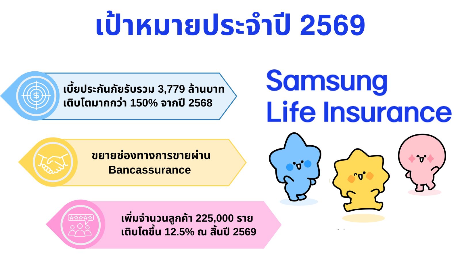 ซัมซุงประกันชีวิต (ประเทศไทย) จำกัด (มหาชน) เดินหน้าสู่ปีที่ 29 ด้วยคอนเซปต์ “A New Beginning, Greater Future” พร้อมเปิดกลยุทธ์ 4P+2C เพื่อยกระดับการดำเนินงานและการให้บริการ ตั้งเป้าผลักดันยอดขายปี 2568 แตะ 2,520 ล้านบาท และเร่งเครื่องขยายการเติบโตครั้งใหญ่ในปี 2569 ให้เพิ่มขึ้นมากกว่า 150% หรือเป็น 3,779 ล้านบาท