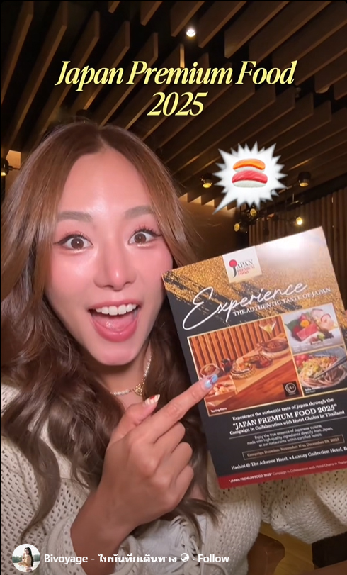 เพื่อสร้างการรับรู้อย่างกว้างขวางและเน้นย้ำความพรีเมียมของวัตถุดิบญี่ปุ่น เจโทรได้ร่วมมือกับ ดาราและอินฟลูเอนเซอร์ชื่อดัง ในการประชาสัมพันธ์แคมเปญ โดยมี อาเล็ก ธีรเดช พระเอกและเจ้าของรายการ YouTube “อาหารของอาเล็ก” และ ใบเฟิร์น อัญชสา นักแสดงและเจ้าของช่อง TikTok “bifern_bivoyage” ร่วมด้วยอินฟลูเอนเซอร์และยูทูบเบอร์ชื่อดังอีก 6 ราย ได้แก่ Midnight.Bitefood, Aroibkk, AT EVERYWHERE, และ luxpro.glam ซึ่งจะผลิตคอนเทนต์รีวิวเมนูพิเศษจากวัตถุดิบพรีเมียมของญี่ปุ่นในห้องอาหารที่เข้าร่วมแคมเปญ