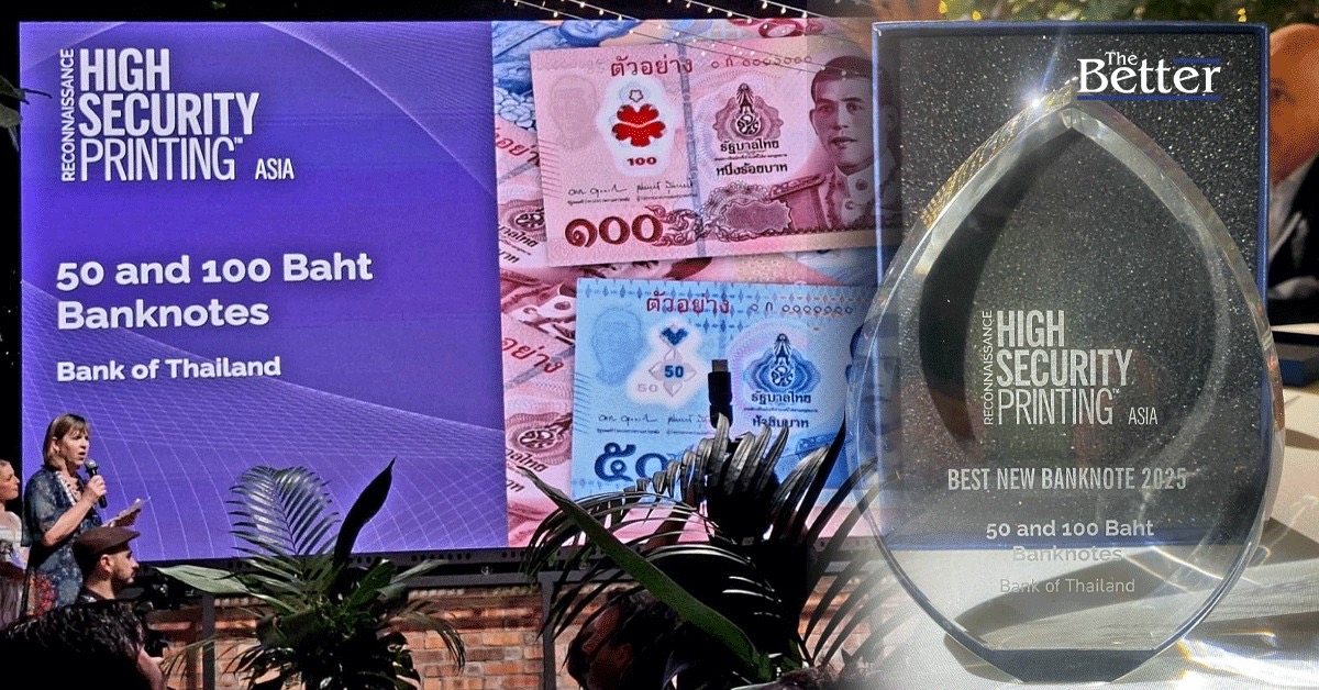 ธนบัตรพอลิเมอร์ชนิดราคา 100 บาท และ 50 บาทของไทยได้รับรางวัล “Best New Banknote 2025” จากเวทีนานาชาติ High Security Printing Asia 2025
