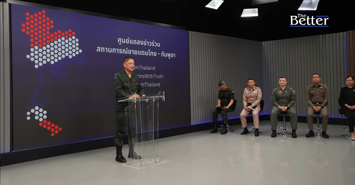 ศูนย์แถลงข่าวร่วมสถานการณ์ชายแดนไทย-กัมพูชา แถลงข่าวประจำวันสรุปสถานการณ์วันที่ 10 ธ.ค. 2568 โดยมีพลเรือตรี สุรสันต์ คงศิริ โฆษกกระทรวงกลาโหม, พลอากาศโท จักรกฤษณ์ ธรรมวิชัย โฆษกกองทัพอากาศ, พันเอก ริชฌา สุขสุวานนท์ รองโฆษกกองทัพบก, นาวาเอก นรา คุณโฑถม ผู้ช่วยโฆษกกองทัพเรือ และนางมาระตี นะลิตา อันดาโม รองอธิบดีกรมสารนิเทศ และรองโฆษกกระทรวงการต่างประเทศ ร่วมแถลงข่าวการดำเนินการของเหล่าทัพต่อสถานการณ์ตึงเครียดบริเวณชายแดนไทย - กัมพูชา ที่ศูนย์แถลงข่าวร่วมสถานการณ์ชายแดนไทย - กัมพูชา ณ สถานีวิทยุโทรทัศน์กองทัพบก