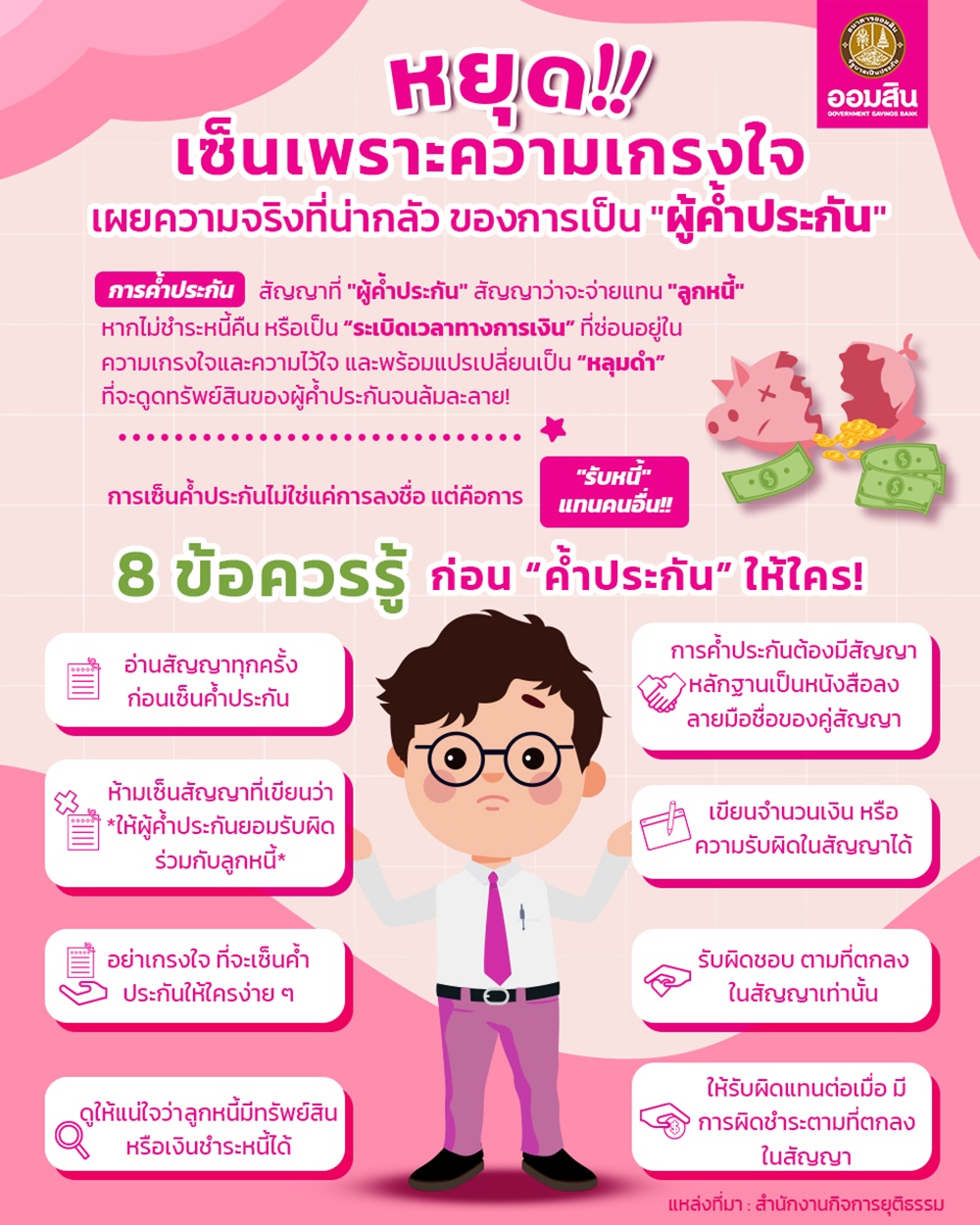 จงจำไว้เสมอว่า การตัดสินใจค้ำประกันคือการนำอนาคตทางการเงินของตนเองไปผูกติดกับผู้อื่น ดังนั้น ค้ำอย่างมีสติ คิดก่อนค้ำ = ปลอดภัยกว่า!