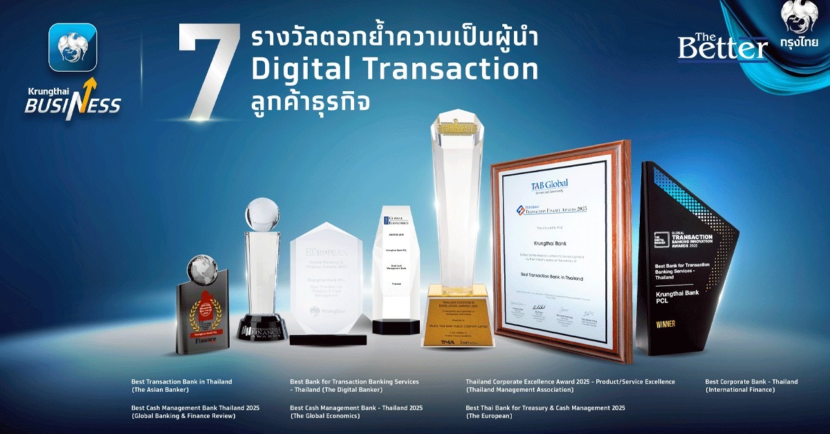 “กรุงไทย” คว้า 7 รางวัลใหญ่ด้าน Transaction Banking จากเวทีชั้นนำระดับประเทศ และนานาชาติ ตอกย้ำบทบาทผู้นำโซลูชันธุรกิจยุคใหม่