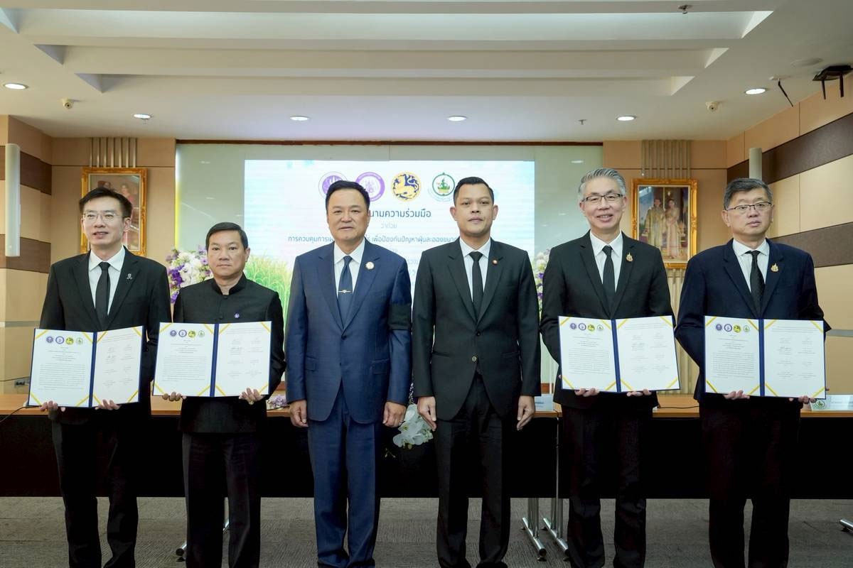 ดังนั้นกระทรวงอุตสาหกรรม จึงได้มอบหมายให้สำนักงานคณะกรรมอ้อยและน้ำตาลทราย (สอน.) เดินหน้าขับเคลื่อนมาตรการเพิ่มอ้อยตัดสดลดการเผา สะท้อนให้เห็นถึงความร่วมมือจากทั้งเกษตรกร โรงงานน้ำตาล และหน่วยงานทุกภาคส่วน โดยได้ยกระดับความร่วมมือกับหน่วยงานภาครัฐหลักอย่างต่อเนื่อง โดยเฉพาะอย่างยิ่ง กระทรวงอุตสาหกรรมจึงร่วมกับ 4 กระทรวงหลัก ซึ่งเป็นที่มาของลงนามความร่วมมือว่าด้วยการควบคุมการเผาอ้อยและพืชไร่ เพื่อป้องกันปัญหาฝุ่นละอองขนาดเล็ก (PM 2.5) ในวันนี้ มีเป้าหมายเพื่อบูรณาการความร่วมมือระหว่างหน่วยงานภาครัฐในการแก้ไขปัญหาการเผาอ้อยในช่วงฤดูการผลิตปี 2568/2569 ถึงฤดูการผลิตปี 2569/2570 โดยให้ความสำคัญกับการลดการเผาอ้อยทั้งก่อนและหลังการเก็บเกี่ยว ควบคู่กับการลดผลกระทบจากฝุ่น PM 2.5 ผ่านการแลกเปลี่ยนองค์ความรู้ ความเชี่ยวชาญ เทคโนโลยี และเครือข่ายการปฏิบัติงานของแต่ละหน่วยงาน เพื่อให้เกิดผลลัพธ์และต่อยอดในระยะยาว ทั้งด้านเศรษฐกิจ สังคม และสิ่งแวดล้อม.jpg)