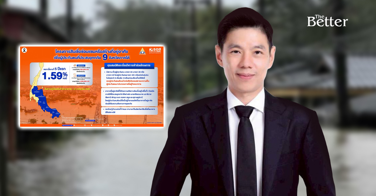 ธอส. ร่วมกับ สปส. เดินหน้าฟื้นฟู 9 จังหวัดภาคใต้ จัดทำสินเชื่อซ่อมแซมหรือสร้างที่อยู่อาศัยเพื่อผู้ประกันตนที่ประสบอุทกภัย อัตราดอกเบี้ย 5 ปีแรกเพียง 1.59% ต่อปี ผ่อนต่ำสุดเริ่มต้นเดือนละ 1,500 บาทเท่า