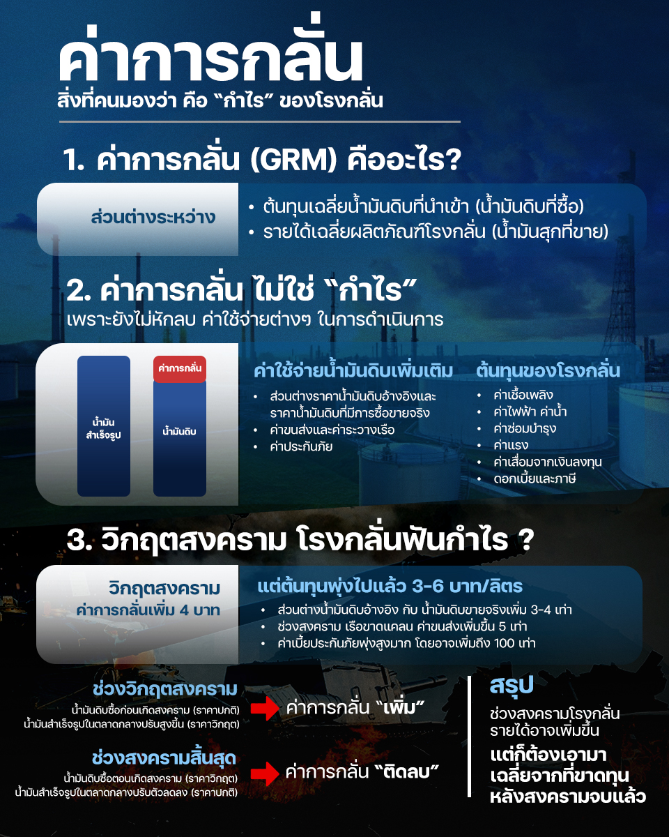 ช่วงสงคราม ค่าการกลั่นเพิ่ม แต่ต้นทุนพุ่งแรงกว่า