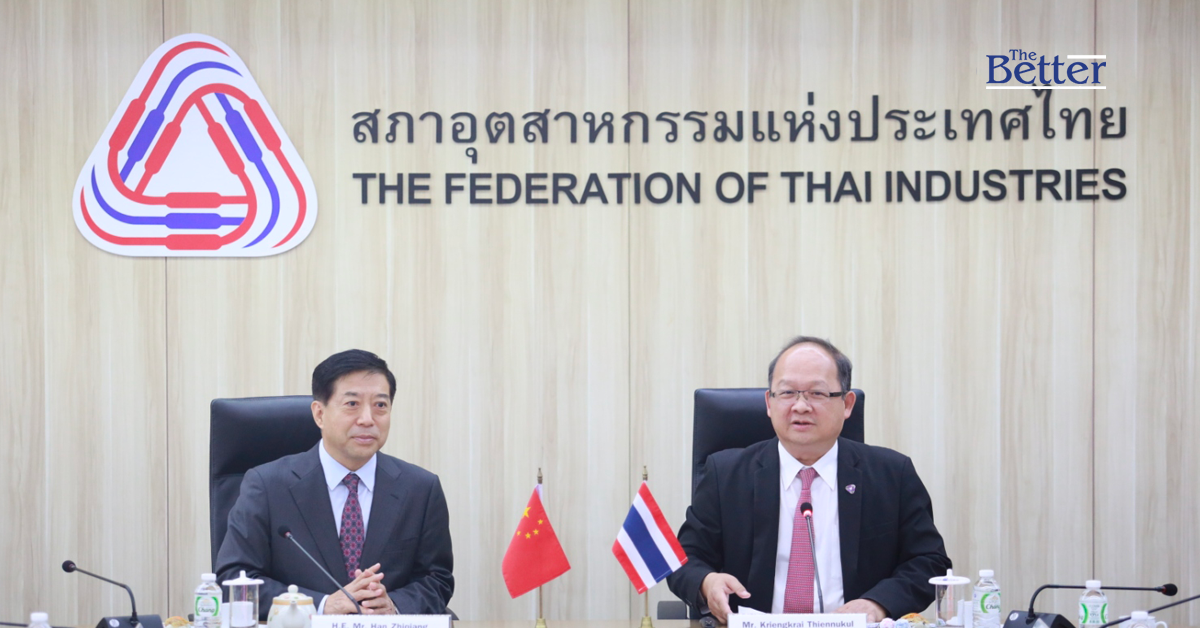 นายเกรียงไกร เธียรนุกุล ประธานสภาอุตสาหกรรมแห่งประเทศไทย (ส.อ.ท.) นำคณะกรรมการบริหาร ส.อ.ท. พร้อมด้วยนายอรุณ เอี่ยมสุรีย์ ประธานสถาบันเศรษฐกิจและการลงทุนไทย-จีน ร่วมประชุมหารือกับ ฯพณฯ หาน จื้อเฉียง เอกอัครราชทูตสาธารณรัฐประชาชนจีนประจำประเทศไทย และคณะติดตาม ในโอกาสให้เกียรติเยือน ส.อ.ท.ว่า ในช่วงหลายปีที่ผ่านมา ส.อ.ท.เป็นตัวแทนของภาคเอกชนไทย ใน 45 กลุ่มอุตสาหกรรมหลักของประเทศ ซึ่งเชื่อมต่อการค้าการลงทุนระหว่างไทยกับจีนตลอดมา ส่งผลให้การค้าระหว่างสองประเทศเติบโตอย่างต่อเนื่อง
