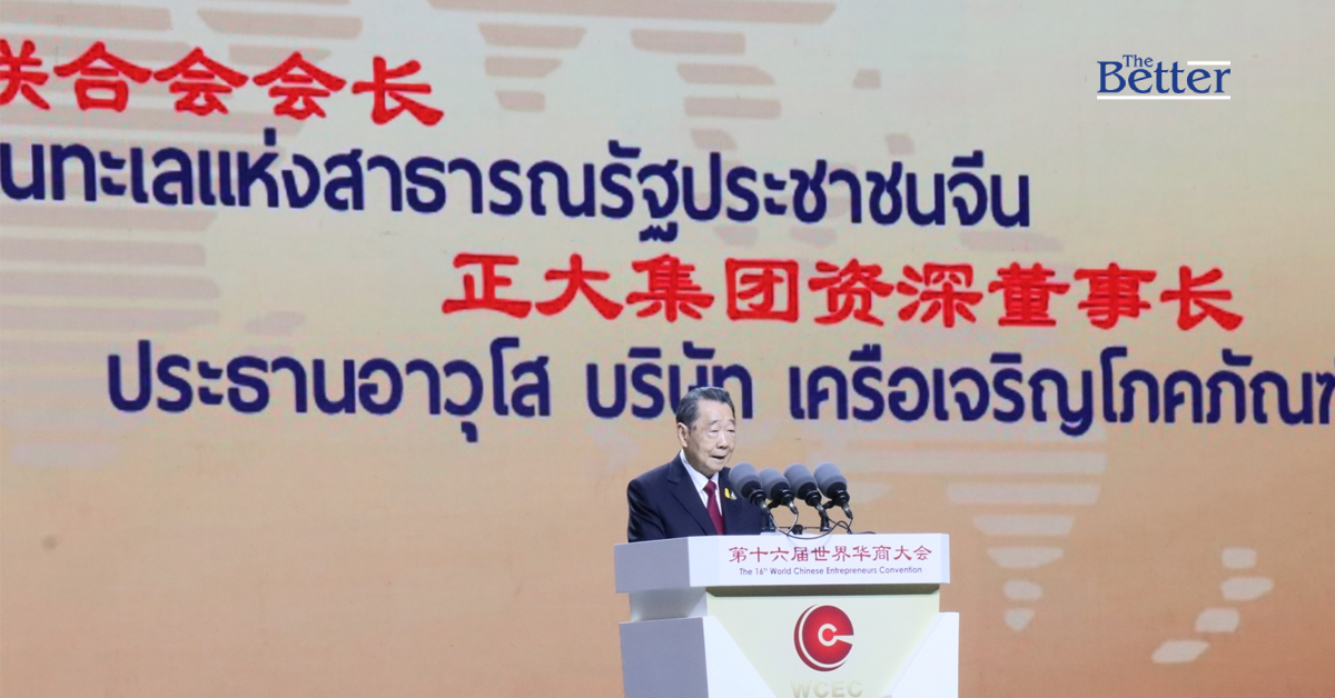นายธนินท์ เจียรวนนท์ นายกสมาคมนักธุรกิจชาวจีนโพ้นทะเลแห่งสาธารณรัฐประชาชนจีน และประธานกิตติมศักดิ์ถาวรหอการค้าไทย–จีน กล่าวปาฐกถาพิเศษในงานประชุมนักธุรกิจชาวจีนโลก ครั้งที่ 16 ว่า ปัจจุบันโลกของเทคโนโลยีก้าวหน้าไปมาก เราจำเป็นต้องศึกษาวิทยาการด้านต่างๆ จากสหรัฐอเมริกา และต้องนำทรัพยากรจากทั่วโลก ทั้งด้านบุคคลากร เงินทุน เทคโนโลยี และวัตถุดิบ เข้ามาที่จีน ซึ่งในวันนี้กล่าวได้ว่า จีนมีปัจจัยพื้นฐานในด้านต่าง ๆ เหล่านี้พร้อมที่จะพลิกโฉมการพัฒนาจากเดิมที่ใช้แรงงานราคาถูก เราจึงมีความมั่นใจในนโยบายการพัฒนาเศรษฐกิจของจีนเป็นอย่างมาก