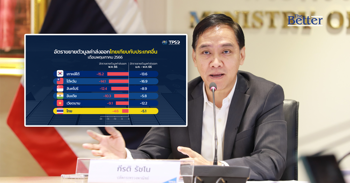 นายกีรติ รัชโน ปลัดกระทรวงพาณิชย์ เปิดเผยถึงภาวะการค้าระหว่างประเทศว่า การส่งออกของไทยในเดือนพฤษภาคม 2566 มีมูลค่า 24,340.9 ล้านเหรียญสหรัฐ (830,448 ล้านบาท) หดตัวร้อยละ 4.6 เป็นผลจากภาวะเศรษฐกิจของประเทศคู่ค้าที่ยังมีความไม่แน่นอน แม้ว่าภาคการผลิตอุตสาหกรรมโลกเร่งตัวขึ้นจากการผ่อนคลายปัญหาห่วงโซ่การผลิต แต่คำสั่งซื้อใหม่สำหรับการส่งออกไม่ได้เพิ่มขึ้นมากนัก เนื่องจากการดำเนินนโยบายการเงินที่เข้มงวดได้ส่งผลให้ผู้ประกอบการและผู้บริโภคควบคุมการใช้จ่ายมากขึ้น