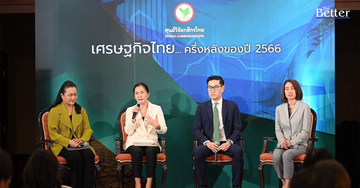 นางสาวณัฐพร ตรีรัตน์ศิริกุล รองกรรมการผู้จัดการ บริษัท ศูนย์วิจัยกสิกรไทย จำกัด กล่าวว่า เศรษฐกิจในช่วงครึ่งปีหลัง 2566 ขยายตัวดีกว่าครึ่งปีแรก แรงหนุนจากการท่องเที่ยวคาดตัวเลขนักท่องเที่ยวต่างชาติทั้งปี 2566 ที่ประมาณ 28.5 ล้านคน และการส่งออกแม้ว่าคาดทั้งปีจะขยายตัวติดลบ 1.2% ก็ตาม ง โดยศูนย์วิจัยกสิกรไทยยังคงประมาณการจีดีพีปี 2566 ที่ 3.7%