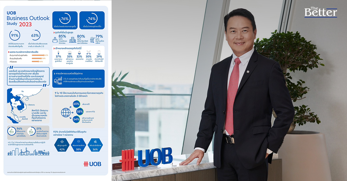รายงาน UOB Business Outlook Study 2023 (SME& Large Enterprises) ที่จัดทำโดยธนาคารยูโอบีเผยธุรกิจเอสเอ็มอีและบรรษัทขนาดใหญ่เชื่อมั่นเศรษฐกิจไทยฟื้นตัว รายงานสำรวจความเชื่อมั่นทางธุรกิจ เทรนด์ธุรกิจและกลยุทธ์หลักที่บริษัทชั้นนำของประเทศไทยใช้เป็นแนวทางหลักในการขับเคลื่อนการดำเนินธุรกิจให้เติบโตหลังการแพร่ระบาดของโรคโควิด-19