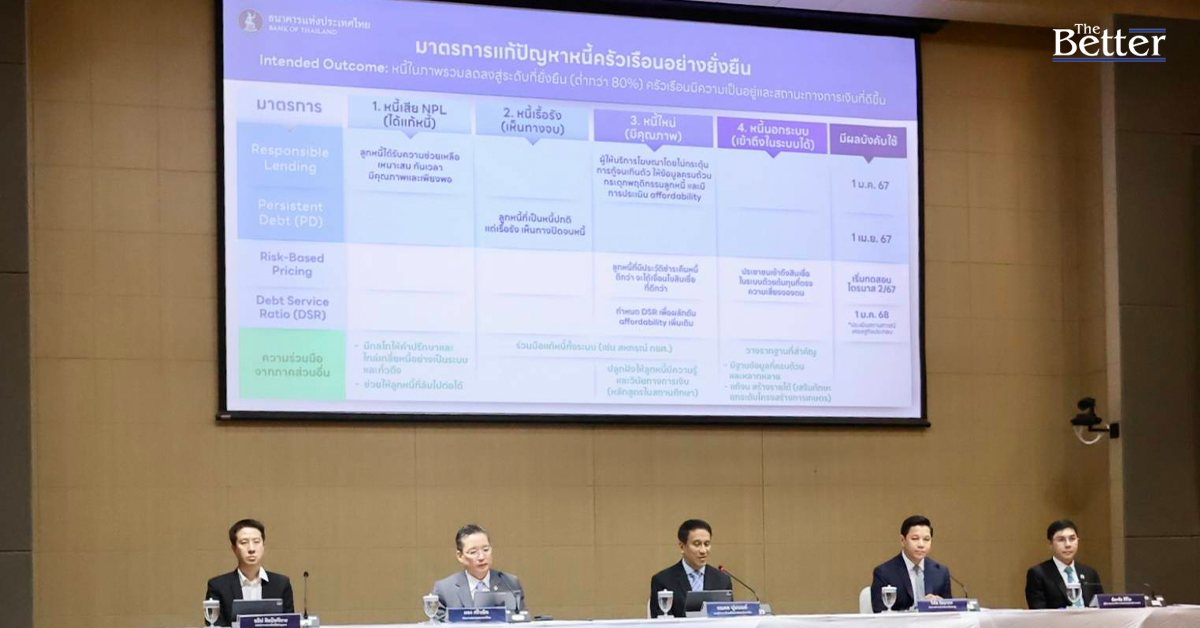 ทั้งนี้ ในการจัดทำมาตรการแก้หนี้ครัวเรือนอย่างยั่งยืน ธปท. ได้หารือกับภาคส่วนต่าง ๆ เช่น ผู้เชี่ยวชาญทั้งในและต่างประเทศ ลูกหนี้ และเจ้าหนี้ เพื่อออกแบบมาตรการที่สามารถแก้ไขปัญหาได้อย่างมีประสิทธิภาพ ถูกหลักการ และครบวงจร ซึ่งการแก้ปัญหาหนี้ครัวเรือนให้สำเร็จและยั่งยืน จำเป็นต้องอาศัยความตั้งใจจริงของทุกหน่วยงานในการร่วมกันขับเคลื่อนการดำเนินการต่าง ๆ ให้เห็นผล เพื่อร่วมกันสร้างจุดเปลี่ยนสำคัญในการปรับพฤติกรรมของทั้งเจ้าหนี้และลูกหนี้ ซึ่งจะส่งผลดีต่อการเติบโตของเศรษฐกิจอย่างยั่งยืนต่อไป