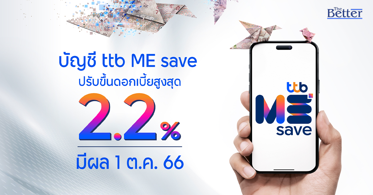 ทีเอ็มบีธนชาต หรือ ทีทีบี ประกาศปรับขึ้นอัตราดอกเบี้ยเงินฝากบัญชีดิจิทัล ทีทีบี มีเซฟ (ttb ME save) รับดอกเบี้ยสูงสุดรวมโบนัส 2.20% ต่อปี มีผลตั้งแต่ 1 ตุลาคม 2566