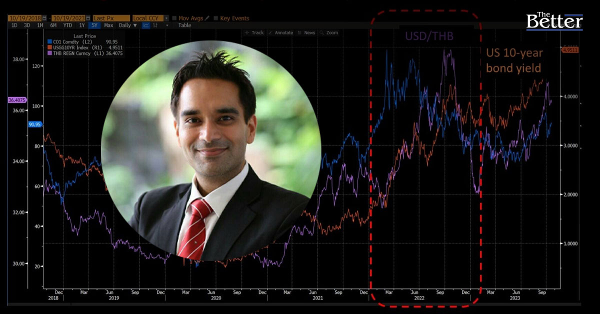 “อมรเทพ จาวาลา” เตือนหลายปัจจัยทำค่าเงินบาทอ่อน ทั้งราคาน้ำมันโลกแพง และที่สำคัญดอกเบี้ยพันธบัตรสหรัฐพุ่งไม่หยุด