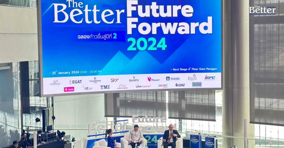 ในงานสัมมนา ‘The Better Future Forward 2024 จัดโดยสำนักข่าว The Better ในโอกาสขึ้นสู่ปีที่ 2 ณ Next Stage ศูนย์การค้าสยามพารากอน พร้อมด้วยกูรูผู้เชี่ยวชาญร่วมถ่ายทอดทิศทางเศรษฐกิจประเทศไทย