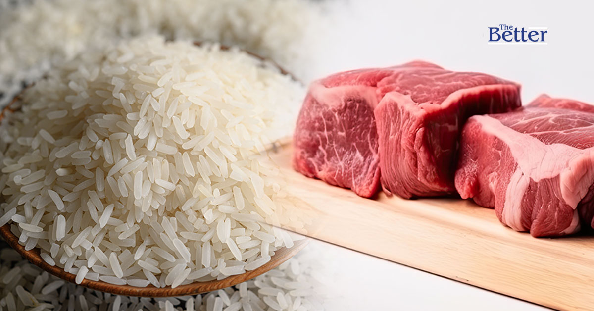 คาดว่า 'meaty' rice จะปล่อยก๊าซคาร์บอนไดออกไซด์ต่ำกว่า 6.27 กิโลกรัม (13.8 ปอนด์) ในขณะที่การผลิตเนื้อวัวจะปล่อยออกมามากกว่า 8 เท่าที่ 49.89 กิโลกรัม นักวิจัย โซฮยอน ปาร์ค อธิบายว่า ”โดยปกติแล้วเราได้รับโปรตีนที่เราต้องการจากปศุสัตว์ แต่การผลิตปศุสัตว์ต้องใช้ทรัพยากรและน้ำจำนวนมาก รวมทั้งการปล่อยก๊าซเรือนกระจกจำนวนมาก ลองจินตนาการถึงการได้รับสารอาหารทั้งหมดที่เราต้องการจากข้าวที่มีโปรตีนเพาะเลี้ยงเซลล์“