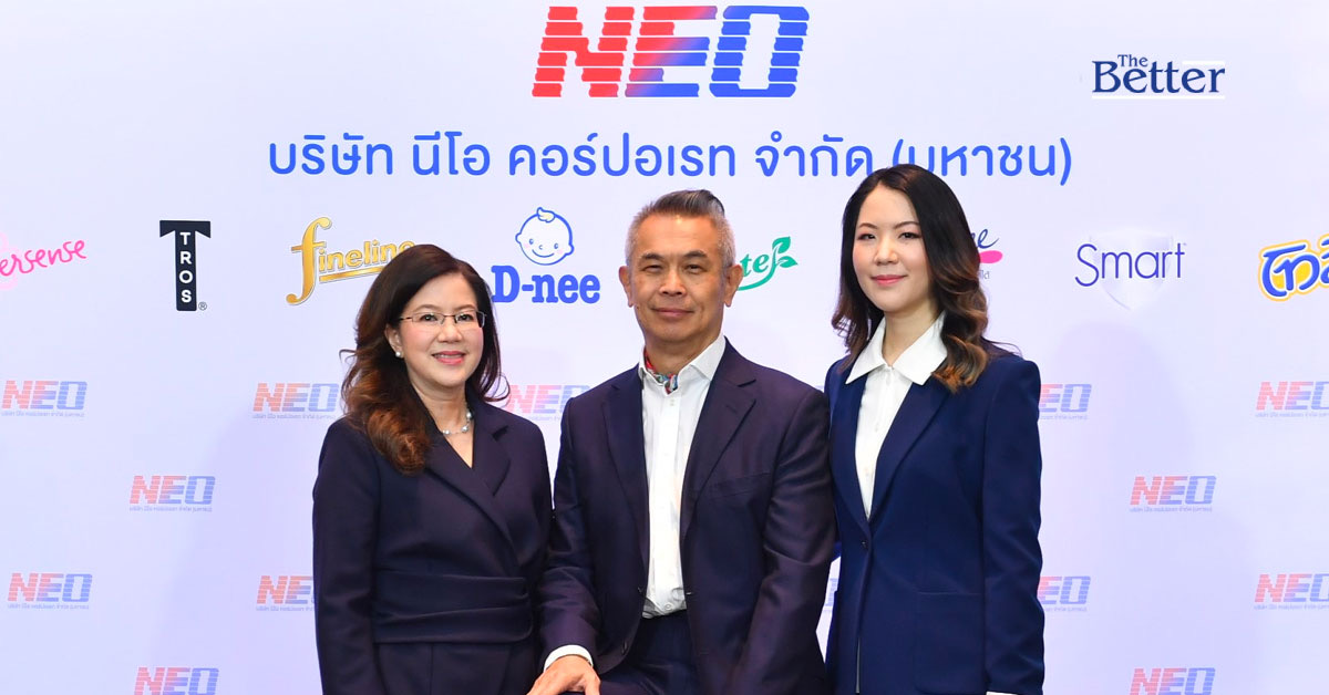 ทั้งนี้ ปัจจุบัน NEO มีสินค้าอุปโภคครอบคลุมกลุ่มผลิตภัณฑ์หลัก 3 กลุ่ม รวม 8 แบรนด์ ประกอบด้วย