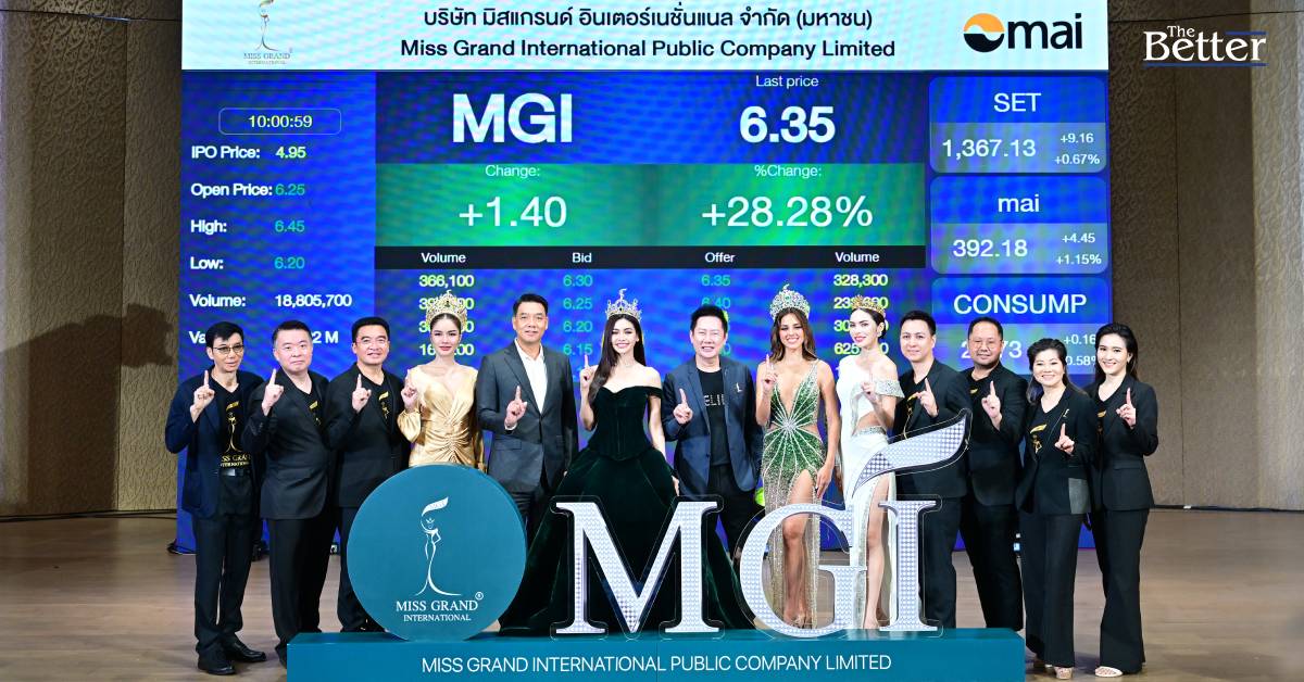 มิสแกรนด์ อินเตอร์เนชั่นแนล หรือ MGI เข้าเทรดวันแรกราคาหุ้น ที่ 6.25 บาท เพิ่มขึ้น 26.26% จากราคา IPO 4.95 บาท ตอกย้ำเป็นบริษัทแรกในตลาดโลกนำเวทีนางงามเข้าระดมทุนสำเร็จ