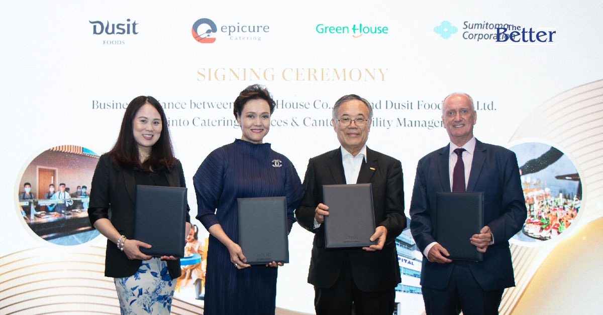 กลุ่มดุสิตธานี โดย “ดุสิต ฟู้ดส์” ลงนามความร่วมมือเชิงกลยุทธ์กับ “กรีนเฮาส์” บริษัทชั้นนำในอุตสาหกรรมอาหารจากประเทศญี่ปุ่น ที่จะเข้าลงทุนถือหุ้นใน “เอ็บเพอคิวร์ เคเทอริ่ง” ในสัดส่วน 20%