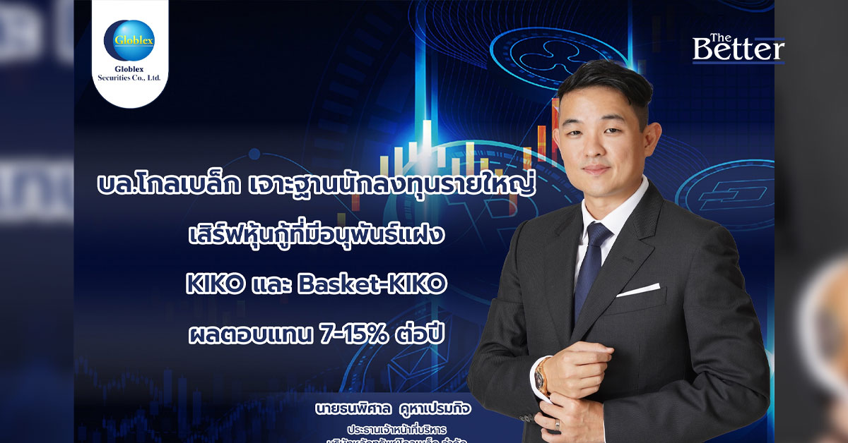 "บล.โกลเบล็ก จำกัด (GBS)" เดินหน้าเจาะกลุ่มนักลงทุนรายใหญ่ ส่งหุ้นกู้ที่มีอนุพันธ์แฝง KIKO และ Basket-KIKO อ้างอิงการลงทุนในหุ้น SET 50 ให้ผลตอบแทน 7-15% ต่อปี ระยะเวลาการลงทุน 3-6 เดือน