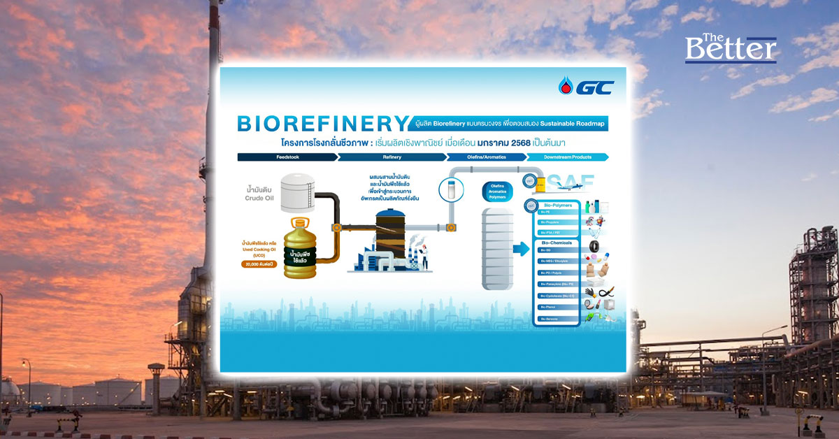 “GC ไม่เพียงเป็นผู้ผลิต SAF รายแรกของประเทศ แต่เรายังเดินหน้าต่อยอดศักยภาพของ Biorefinery เพื่อนำเสนอผลิตภัณฑ์เคมีชีวภาพและพลาสติกชีวภาพที่สามารถทดแทนวัตถุดิบจากฟอสซิล ตอบโจทย์ทั้งตลาด ความยั่งยืน และอนาคตของอุตสาหกรรม โดยมุ่งเน้นการใช้ทรัพยากรหมุนเวียนอย่างน้ำมันพืชใช้แล้วในการผลิตสินค้ามูลค่าสูง สอดคล้องกับแนวคิดเศรษฐกิจหมุนเวียนและโมเดลเศรษฐกิจ BCG (Bio-Circular-Green Economy) ที่ประเทศไทยผลักดัน และเดินหน้าตามกลยุทธ์ขยายธุรกิจมูลค่าสูงและคาร์บอนต่ำของ GC”