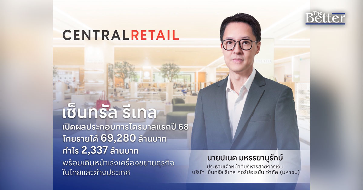 “เซ็นทรัล รีเทล” เปิดผลประกอบการไตรมาสแรกปี 68 โกยรายได้ 69,280 ล้านบาท กำไร 2,337 ล้านบาท พร้อมเดินหน้าเร่งเครื่องขยายธุรกิจในไทยและต่างประเทศ