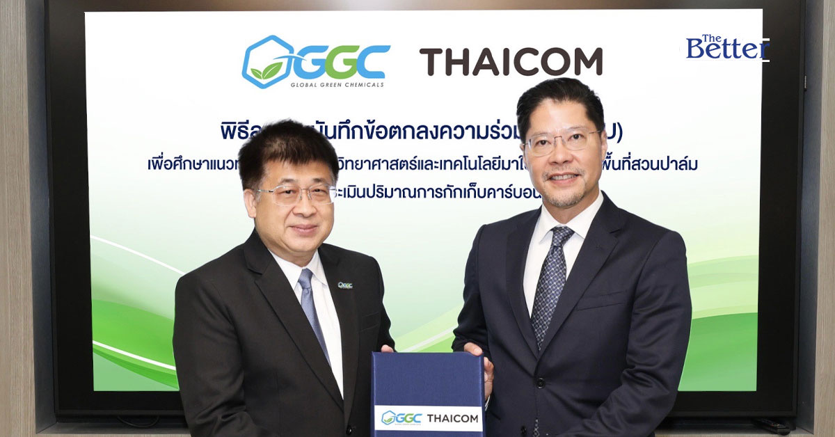 บริษัท โกลบอลกรีนเคมิคอล จำกัด (มหาชน) หรือ “GGC” ร่วมกับ บริษัท ไทยคม จำกัด (มหาชน) หรือ “ไทยคม” ร่วมลงนามบันทึกข้อตกลงความร่วมมือ เพื่อศึกษาแนวทางการนำระบบวิทยาศาสตร์และเทคโนโลยีมาใช้ตรวจสอบพื้นที่สวนปาล์มและประเมินปริมาณการกักเก็บคาร์บอน เพื่อแลกเปลี่ยนความรู้ความเข้าใจร่วมพัฒนาการเก็บข้อมูลพื้นที่ปลูกปาล์มน้ำมันและประเมินปริมาณการกักเก็บคาร์บอนจากการปลูกปาล์มน้ำมัน ภายใต้ความร่วมมือดังกล่าว ไทยคมมีบทบาทในการนำแพลตฟอร์มด้านเทคโนโลยีอวกาศ “CarbonWatch” มาใช้ต่อยอดและพัฒนาในการตรวจสอบและประเมินการกักเก็บคาร์บอนในสวนปาล์ม โดยมี GGC เป็นผู้เชี่ยวชาญในการให้ข้อมูลสนับสนุนและติดตามพื้นที่ต่างๆ ในการทำคาร์บอนเครดิต โดยมีเป้าหมายสำคัญ เพื่อเพิ่มขีดความสามารถการแข่งขันด้านการพัฒนาผลิตภัณฑ์คาร์บอนต่ำที่ผลิตมาจากปาล์มน้ำมัน และพัฒนาเทคโนโลยีการเก็บข้อมูลพื้นที่ปลูกปาล์มน้ำมันของประเทศไทยโดยการใช้เทคโนโลยีได้อย่างเป็นระบบและเป็นไปตามมาตรฐานสากล